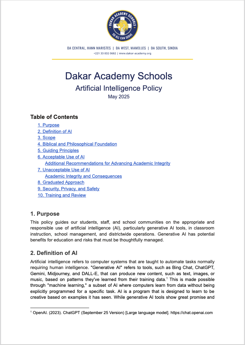 Dakar Academy expects community members to govern themselves appropriately online, understanding that school technology is for academic and administrative use. Please refer to our Responsible Use Agreement for Technology in conjunction with this statement.